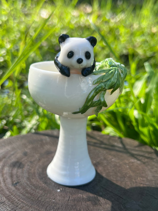 Handmade Chinese Yangzhiyu Panda Teacup Original Designed High Feet Teacup