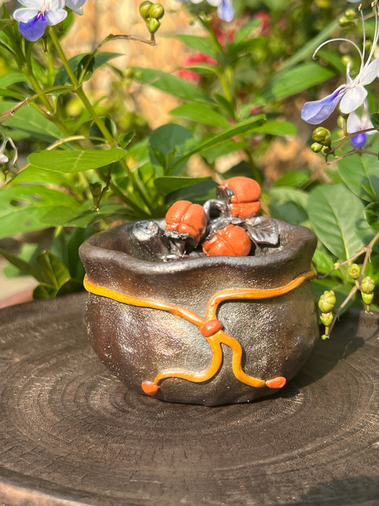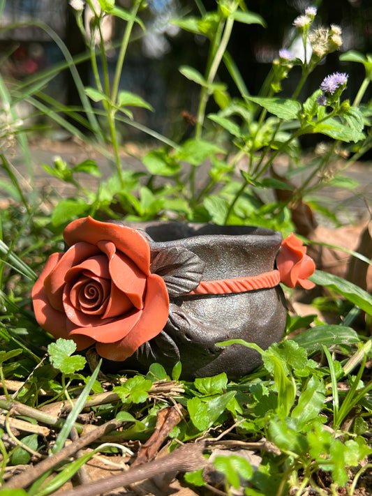 Handmade Chinese Tietai Pottery Woodfired Natural Gloss Artwork Orange Rose Flower Teacup Gongfu Teaware Teacup