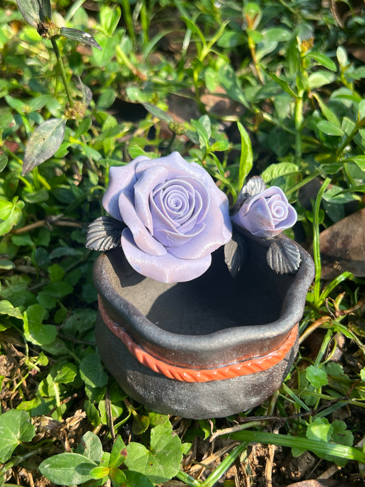 Handmade Chinese Tietai Pottery Woodfired Natural Gloss Artwork Purple Rose Flower Teacup Gongfu Teaware Teacup