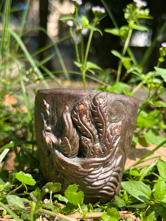 Handmade Chinese Tietai Pottery Woodfired Natural Gloss Artwork Phoenix Teacup Gongfu Teaware Teacup