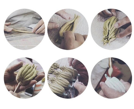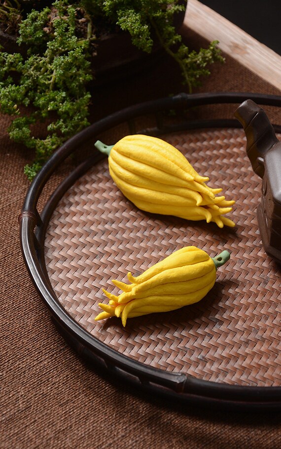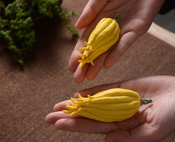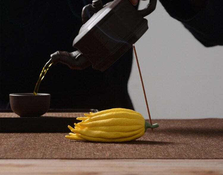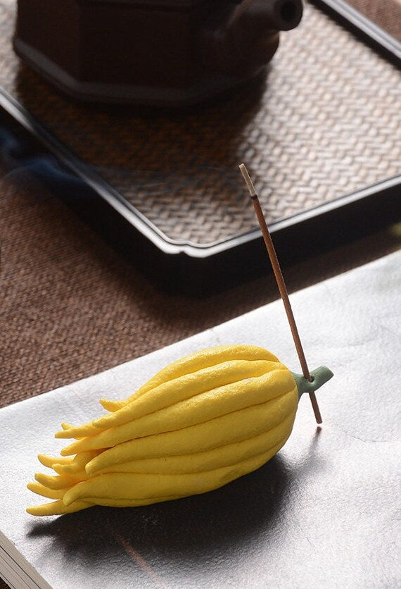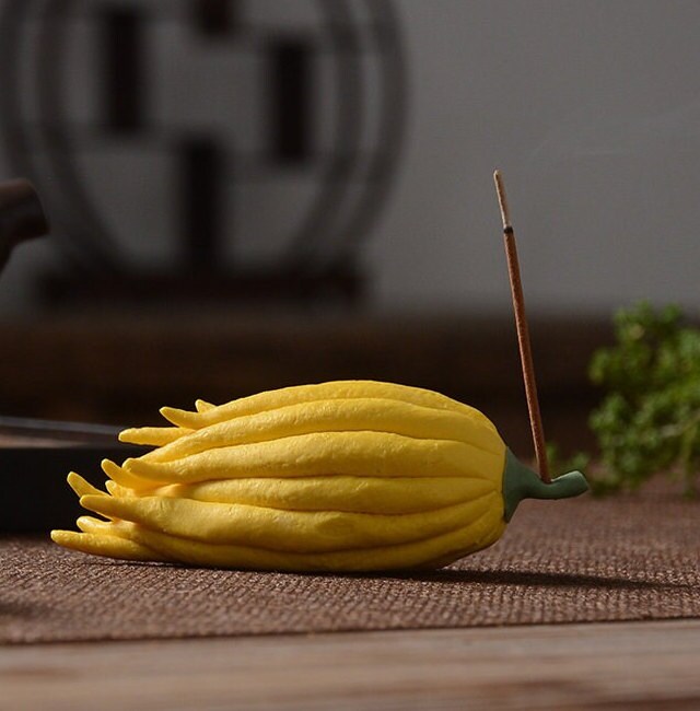 In Chinese Culture, the bergamot(Buddha's hand) symbolizes wisdom and strength and is a common auspicious pattern. Buddha's hand also symbolizes courage, it is like Buddha's hand to block all disasters for you. This lovely incense Buddha's hand is also can used as a tea pet in your tea ceremony. The last photo exactly shows how the incense holder is made :)