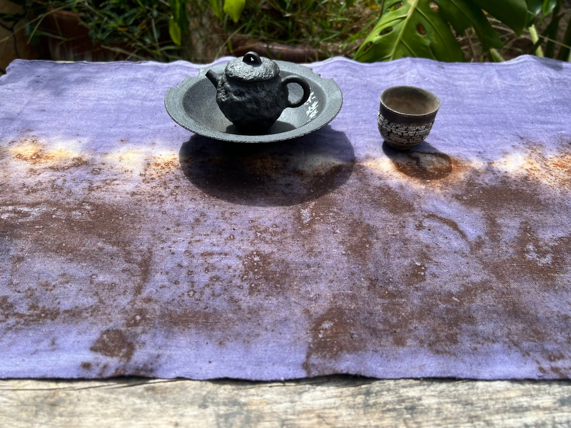 Hand Dyed Plant Dyed Cotton Tea Table Cloth Nature Dye Tea Mat Chabu Chaxi Purple Color