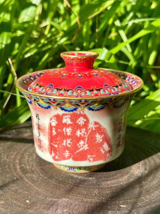 Chinese Red Enameled Hand Painted Porcelain Imitating Tapian Traditional Rubbing Bouddha Calligraphy Masterpiece Gaiwan Tea Tray SetΚανονική τιμή Από $189.00 USDΚανονική τιμήΤιμή μονάδας ανά-