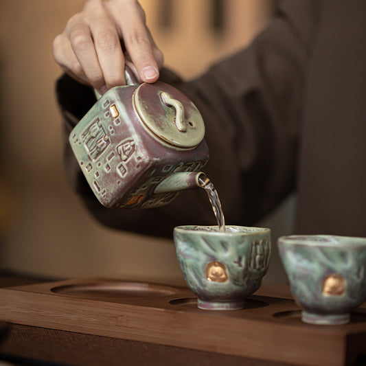 Handcrafted Chinese Dunhuang Style Teapot Set Antique Style Teaware Kungfu Teapot Tea Ceremony