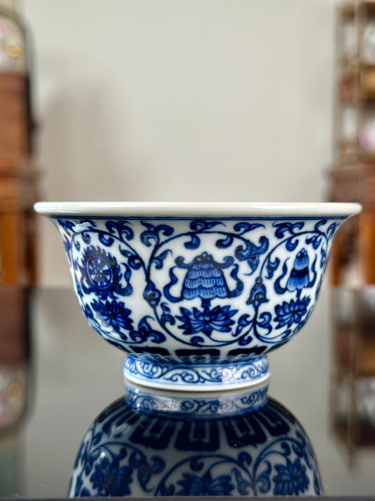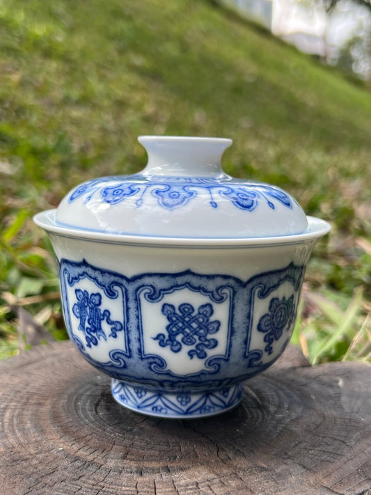 Handcrafted Chinese Hand Painted Chinese Blue and White Porcelain Baoxiang Flower Gaiwan Jingdezhen Teapot Ceramic Artwork