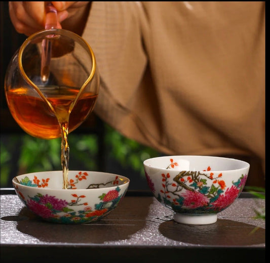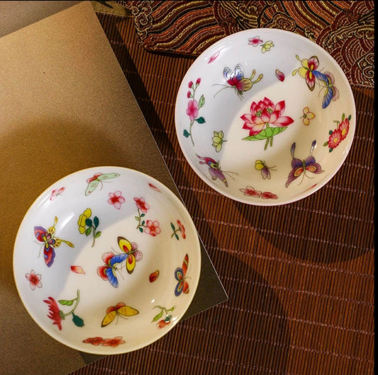 Handcrafted Chinese Hand Painted Chinese Butterfly Jingdezhen Famille Rose Teacup Master Pottery Artwork