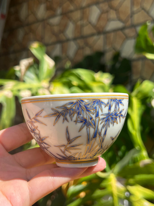 Handcrafted Chinese Hand Painted Chinese Bamboo Pattern Jingdezhen Teacup Master Cup Pottery Artwork