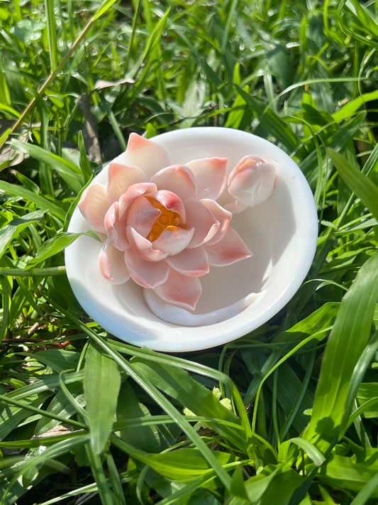 Handcrafted Chinese Yazhiyu Mutton Fat Jade Clay Pink Lotus Flower Teacup