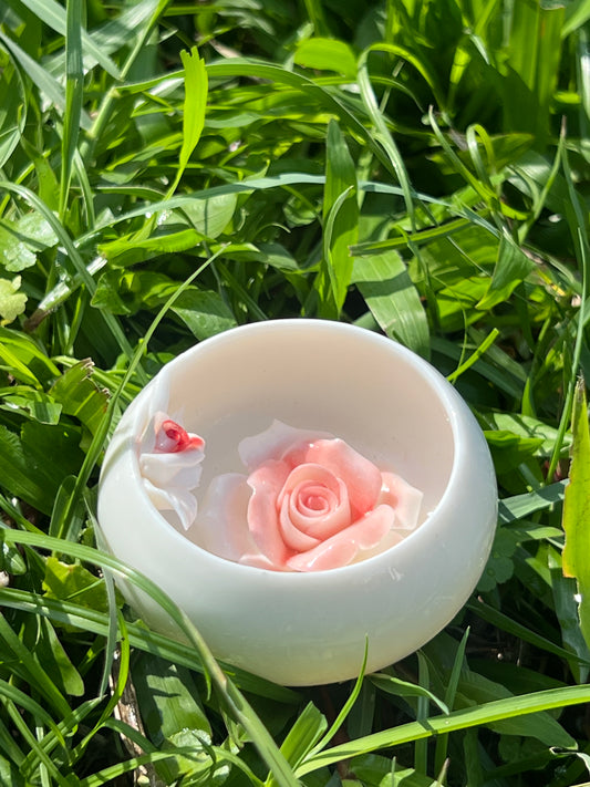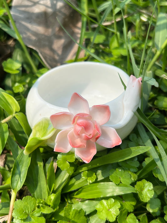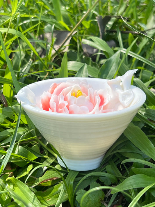 Handcrafted Chinese Yazhiyu Mutton Fat Jade Clay Pink Peony Flower Teacup
