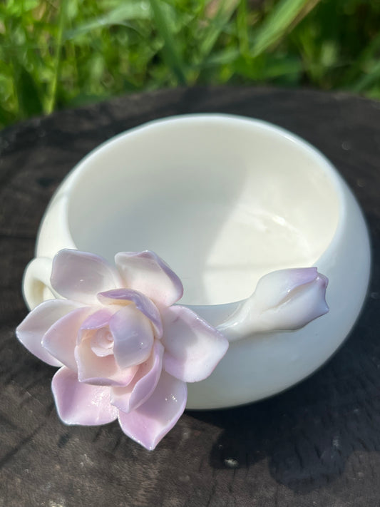 Handcrafted Chinese Yazhiyu Mutton Fat Jade Clay Pink Rose Purple Flower Teacup