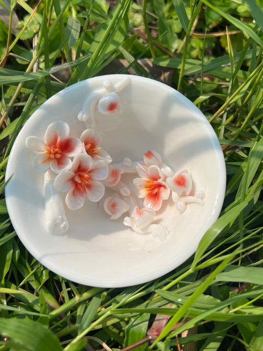 Handcrafted Chinese Yazhiyu Mutton Fat Jade Clay Pink Purple Plum Blossom Flower Teacup