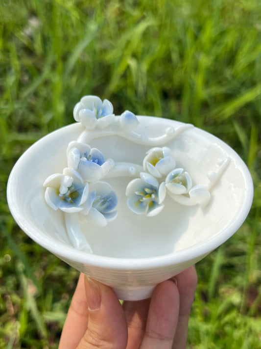 Handcrafted Chinese Yazhiyu Mutton Fat Jade Clay Blue Plum Flower Douli Teacup
