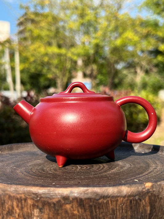 Handcrafted Chinese Red Teapot Original Three Feet Design Pottery Teaware