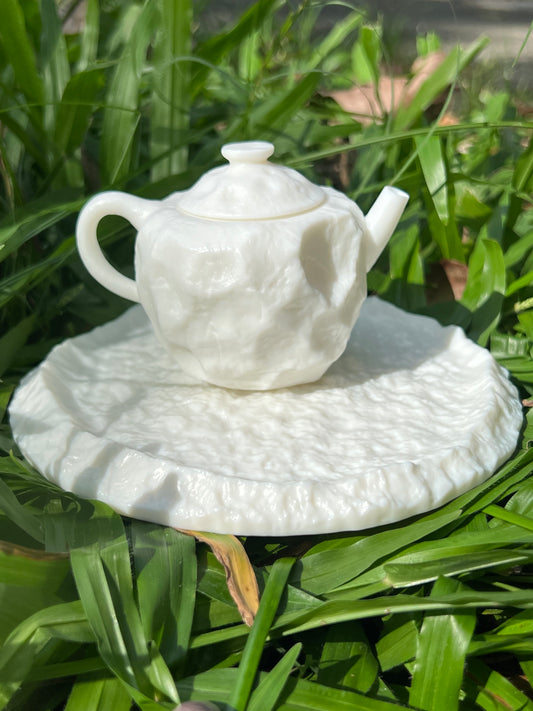 Handcrafted Chinese White Jade Teapot Vintage Style Mutton Fat Jade Teaware Master Ceramic Pottery