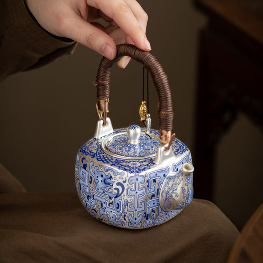 Handmade Chinese Gilded Silver Lifting Teapot Artwork Chinese Taotie Pattern Tea Maker Kungfu Tea Ceremony