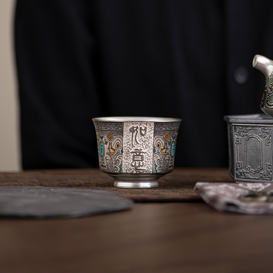 Handmade Chinese Taotie Pattern Teacup Gilded Silver Teacups Artwork Gongfu Tea Ceremony