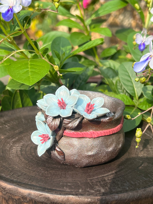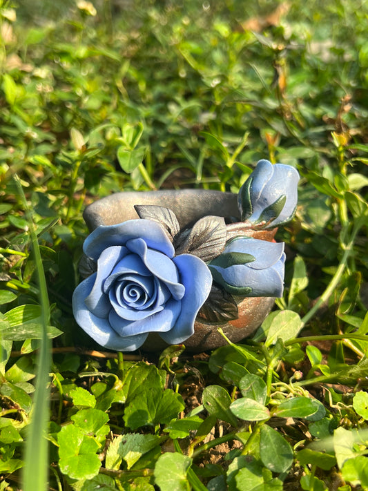 Handmade Chinese Tietai Pottery Woodfired Natural Gloss Artwork Blue Rose Flower Teacup Gongfu Teaware Teacup