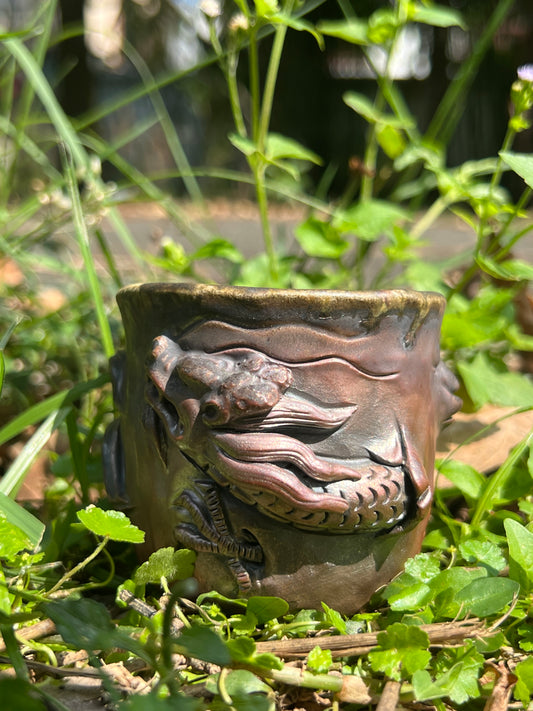 Handmade Chinese Tietai Pottery Woodfired Natural Gloss Artwork Dragon Teacup Gongfu Teaware Teacup