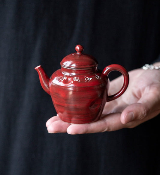 Tea Set Original Handmade Vintage style Teapot Artwork Chinese Red Teapot Gilded Silver