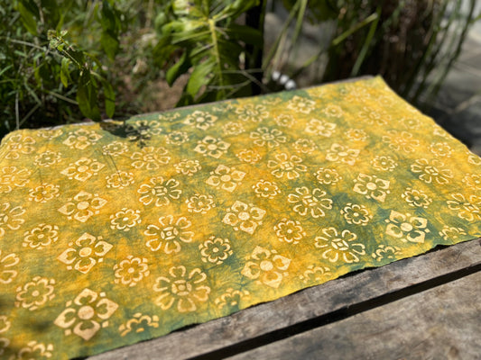 Tea Table Cloth Hand Dyed Plant Dyed Cotton Tea Mat Nature Dye Chabu Chaxi Yellow Green Color