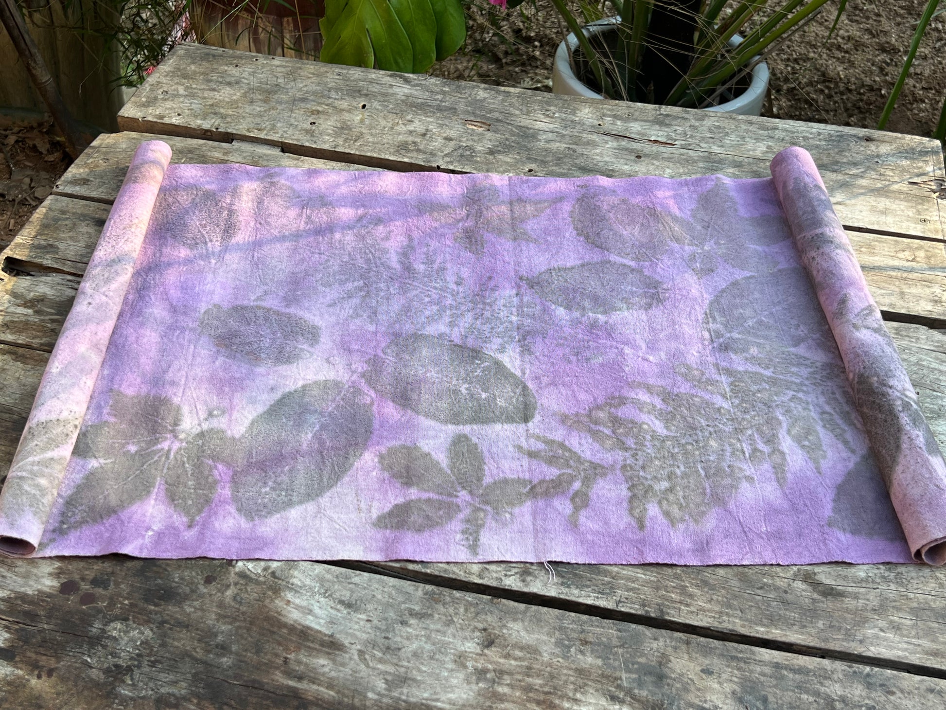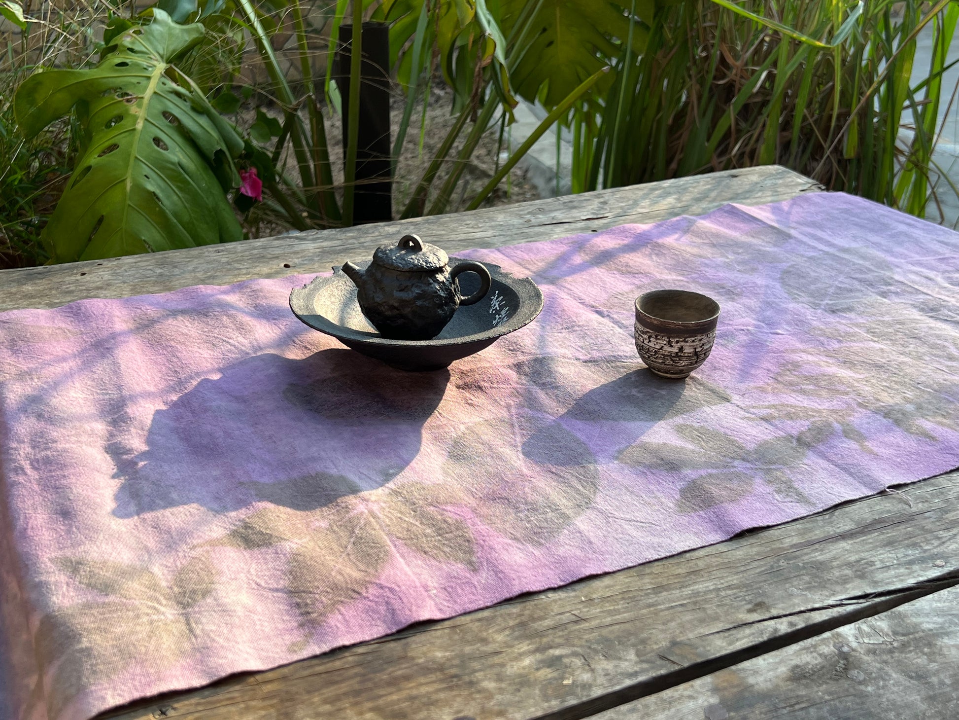 This hand-dyed tea mat is dyed purple, which is subtle, soft, and elegant.