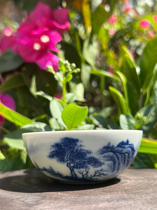 Chinese Handpainted Chinese Landscape Blue and White Porcelain Teacup Jingdezhen Teacup Ceramic Master Pottery Artwork