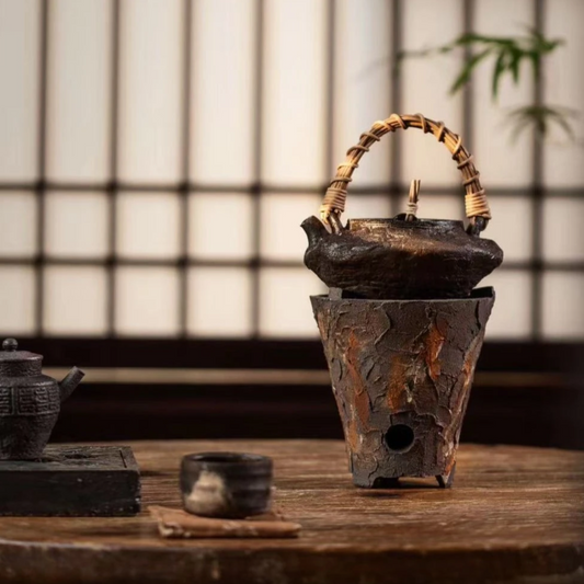 Chinese Jingdezhen Crude Pottery Stove Set Vintage Antique Style Handcrafted Classic Stove Lift Handle Kettle Chinese Master Pottery Ceramic Japanese Ceramic Tea Ceremony