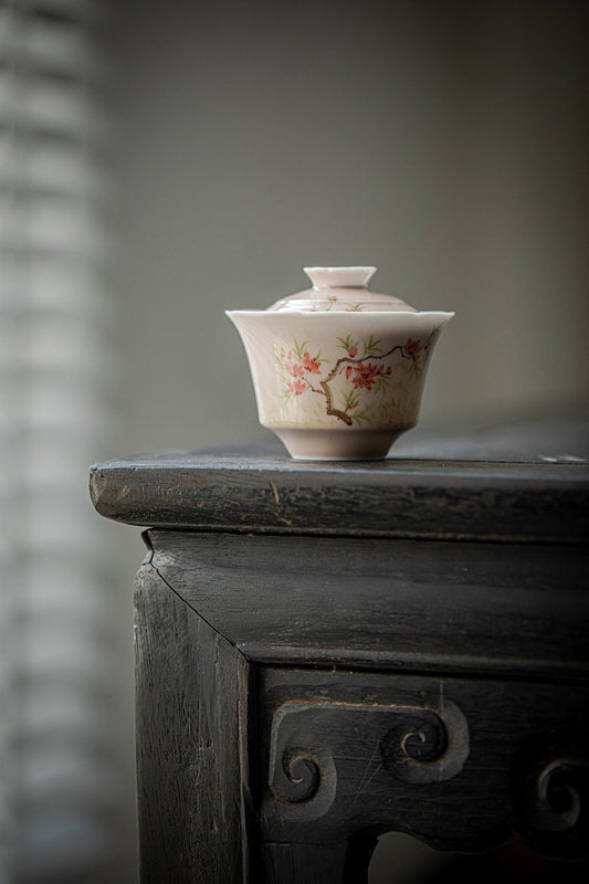 Chinese Jingdezhen Gaiwan Handpaited Pink Wisteria Pattern Teaware Teapot Chinese Master Pottery Ceramic Japanese Ceramic