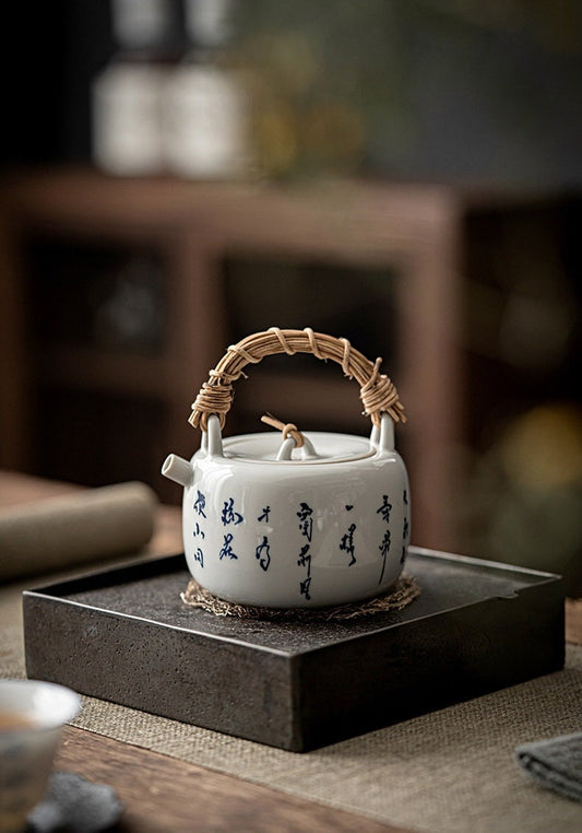 Chinese White Fine Pottery Handpainted Chinese Caligraphy Poem Pot Tea Maker Rattan Beam Pot Ceramic kung fu Tea CeremonyPrecio habitual $98.00 USDPrecio habitualPrecio unitario por$0.00 USDPrecio de oferta $98.00 USD