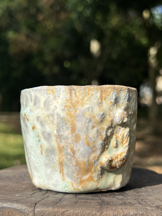 Hand Engraved Mini Monk Woodfired Crude Pottery Teacup Gloss Unique Artwork Chinese Master Pottery Ceramic Japanese Ceramic Tea Ceremony