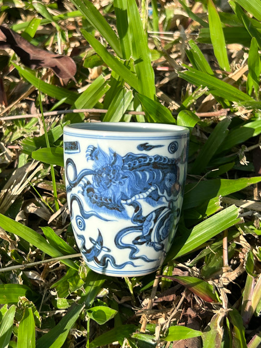 Hand Painted Chinese Blue And White Porcelain Traditional Lion Teacup Jingdezhen Master Ceramic Artwork