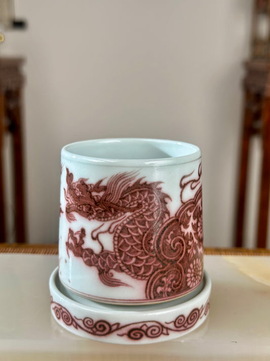 Hand Painted Chinese Dragon Rotating Teacup Underglaze Red Youlihong Jingdezhen Master Ceramic