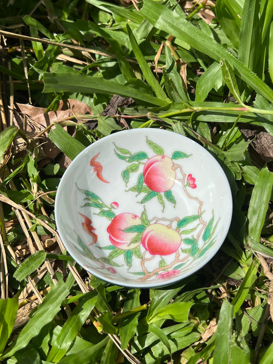 Hand Painted Chinese Famille Rose Peach Teacup Jingdezhen Master Ceramic Artwork