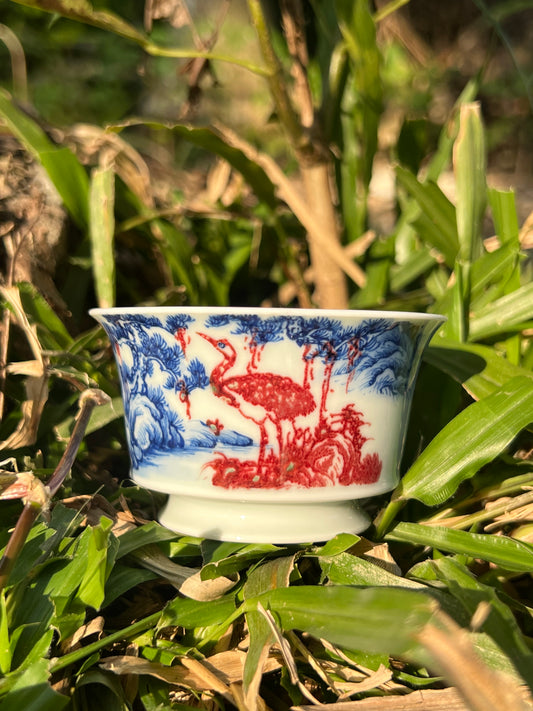 Hand Painted Chinese Landscape Blue and White Porcelain Underglaze Red Porecelain Teacup Jingdezhen Master Ceramic Artwork