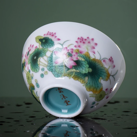 Hand Painted Chinese Enamel Lotus Teacup Jingdezhen Master Ceramic Artwork