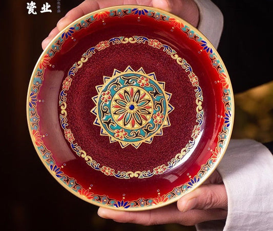 Handcrafted Chinese Hand Painted Chinese Langyao Red Tea Tray Jingdezhen Tea Tray Tea Boat Pottery Artwork