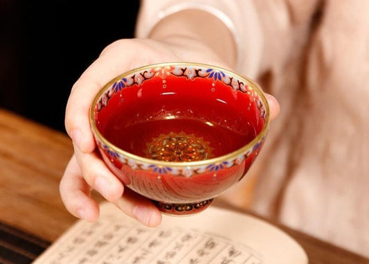 Handcrafted Chinese Hand Painted Chinese Langyao Red Jingdezhen Teacup Pottery Artwork
