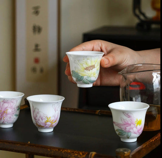 Handcrafted Chinese Hand Painted Chinese Flower Jingdezhen Pastel Teacup Master Pottery Artwork