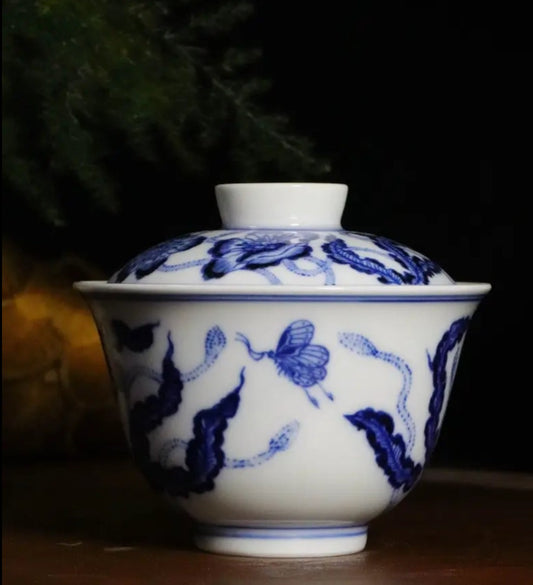 Handcrafted Chinese Hand Painted Chinese Flower Blue and White Porcelain Gaiwan Jingdezhen Teapot Ceramic Artwork