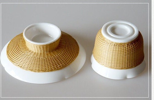Handmade Bamboo Woven Teacup Set Traditional Chinese Master Bamboo Weaving Teacup Pottery Ceramic
