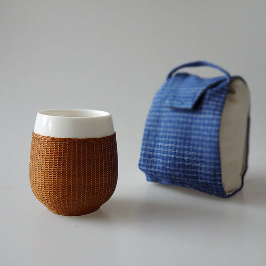 Handmade Bamboo Woven Teacup Traditional Chinese Master Bamboo Weaving Teacup Pottery Ceramic