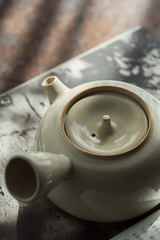 Handmade Chinese Glazed Stove and Side Handle Iced Crack Kettle Set Original Design Alcohol Burner Stove
