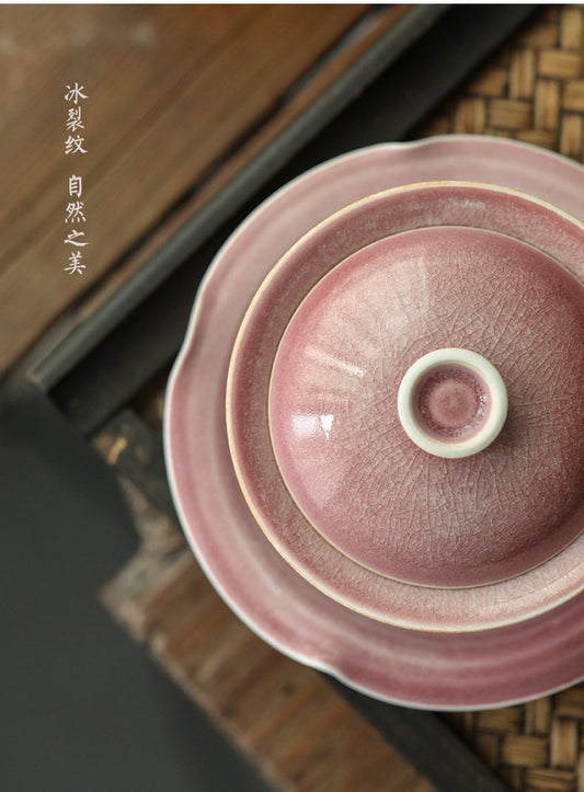 Handmade Chinese Jingdezhen Pink Glazing Tea Bowl Gaiwan Thickened Jingdezhen Handmade Ceramic Cover Bowl Literati Tea Set