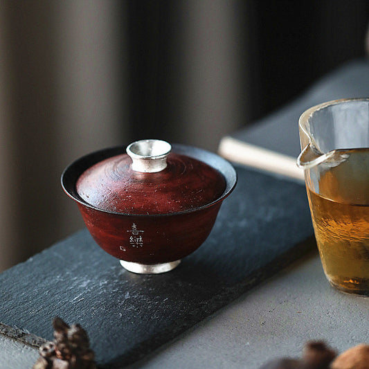 Handmade Chinese Jingdezhen Gaiwan Artwork Chinese Red Teapot Gilded Silver