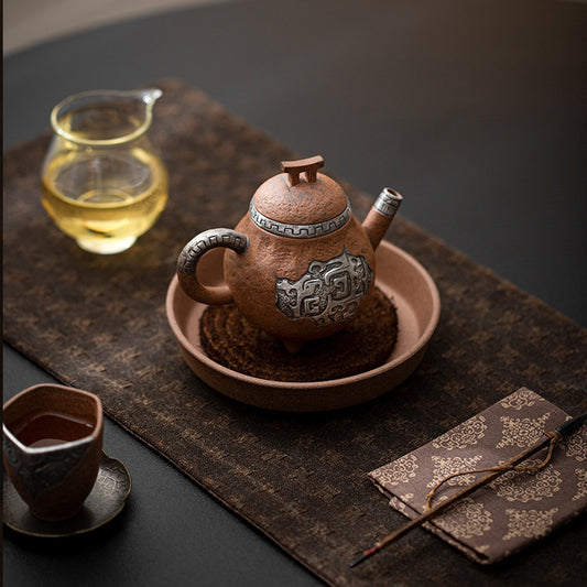 Handmade Pear Teapot Antique Style Chinese Crude Pottery Gild Silver Pot Tea Maker