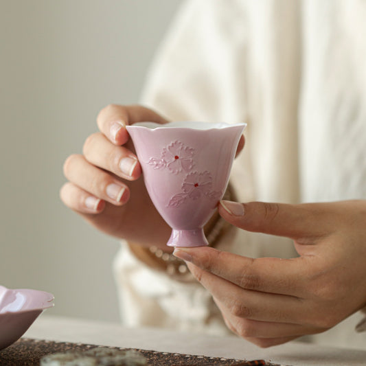 Handpainted Cherry Blossom Pattern Teacup Chinese Jingdezhen Original Arita Ware Pink Teacup Master Ceramic Japanese Ceramic Artwork