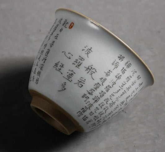 Handpainted Chinese Calligraphy Teacup Antique Ru Kiln Ice Cracked Ceramic Teacup