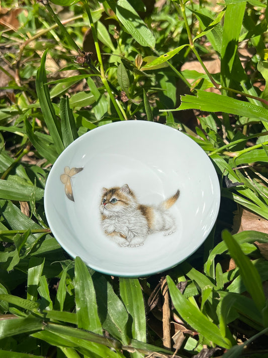 Handpainted Chinese Enamel Cat Animal Teacup Jingdezhen Master Ceramic Artwork