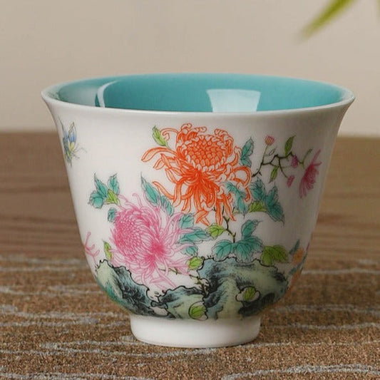 Handpainted Chinese Chrysanthemum Teacup Jingdezhen Enamel Master Cup Pottery Artwork