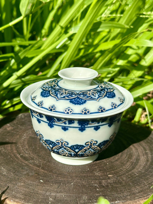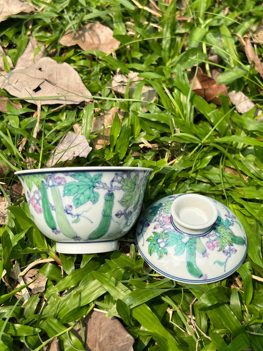 Handpainted Luffa Pattern Chinese Jingdezhen Doucai Master Fine China Gaiwan Teacup Set